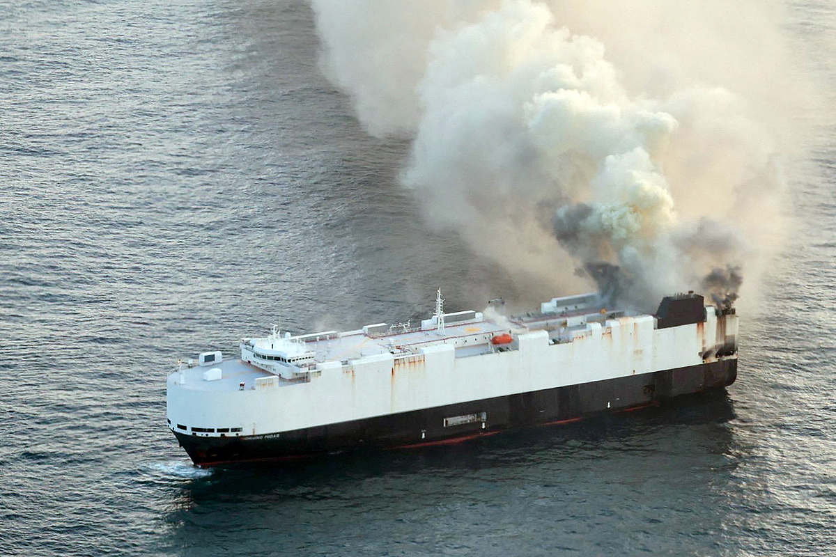 Június 3-án a legénység tűzre figyelt fel, amely a hajó egy részéről, az elektromos járművek tárolóhelyéről eredt. Habár kezdetben a hajó széndioxid-elfojtó rendszerét alkalmazták a tűz oltására, a lángok megfékezése szinte lehetetlennek bizonyult. Az oltási kísérletek előtt kiesett az oltórendszer, és a lítium-ion akkumulátorok sajátos viselkedéséből adódóan a tűz újra lángra lobbant.